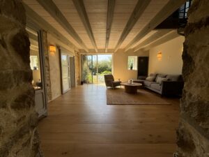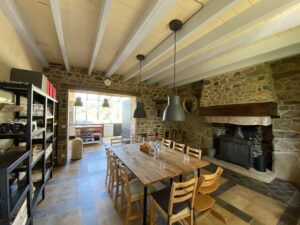 Les poutres anciennes apparentes et la qualité des finitions témoignent de l’authenticité et du soin apporté à cette belle demeure bretonne.