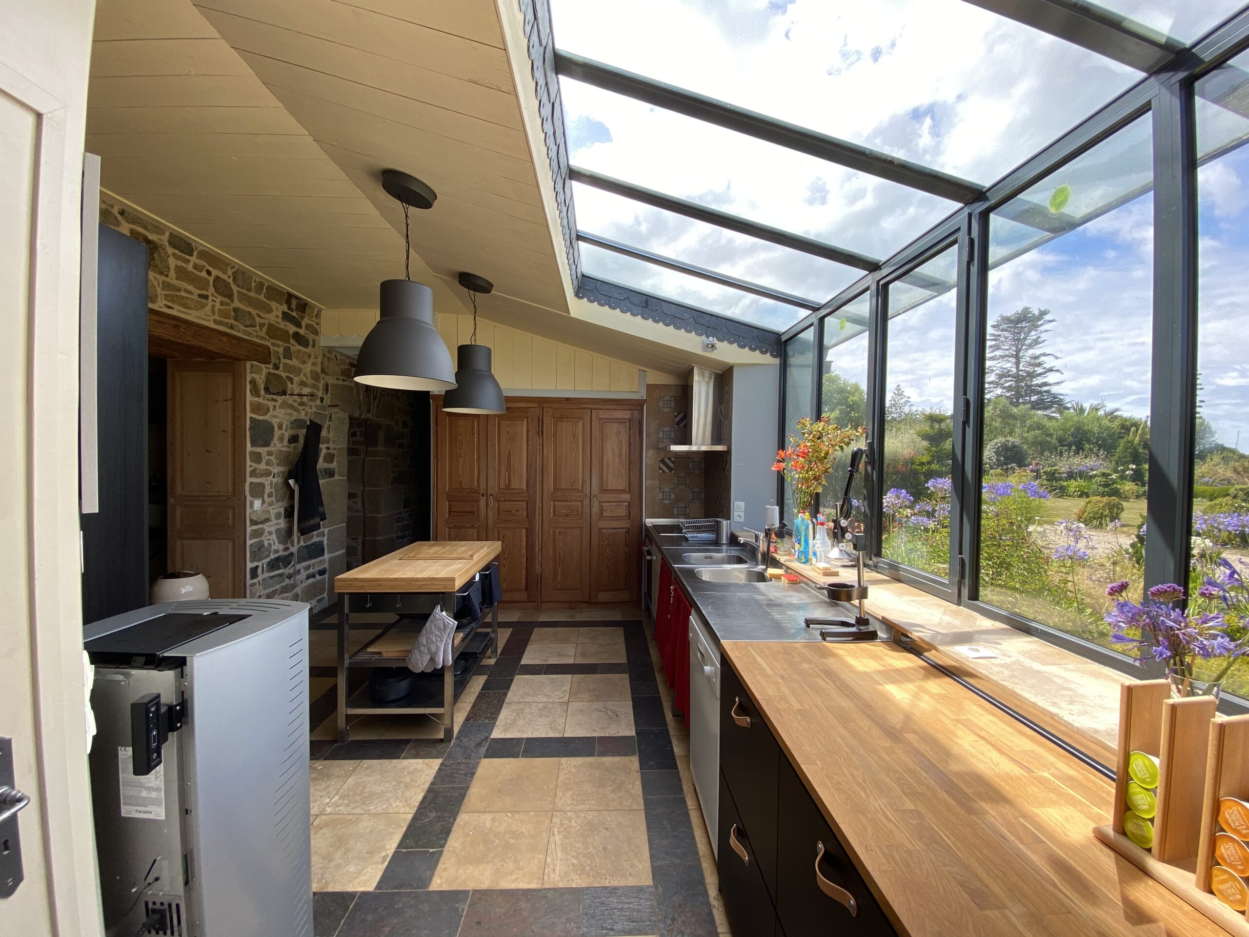 Les poutres anciennes apparentes et la qualité des finitions témoignent de l’authenticité et du soin apporté à cette belle demeure bretonne.