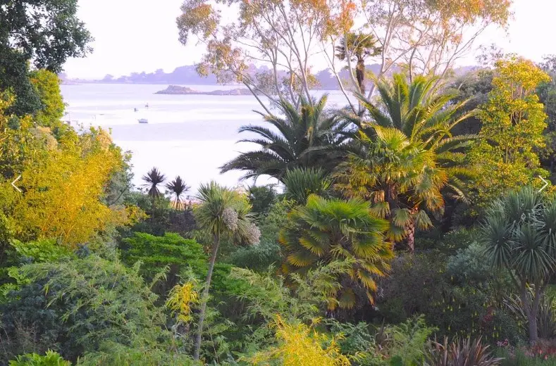 La propriété se trouve sur un très vaste terrain de 74 ares, à l’angle des rues Castel Meur et Hent Poul Stripo du quartier de Keravel. Clos d’un mur en granit traditionnel doublé d’un écran végétal tout au long des trois routes ou ruelles qui l’encadrent, ce terrain est ouvert dans sa partie Nord-Nord Ouest. Dans cette direction, le jardin débouche sur des prairies protégées par la loi littoral.