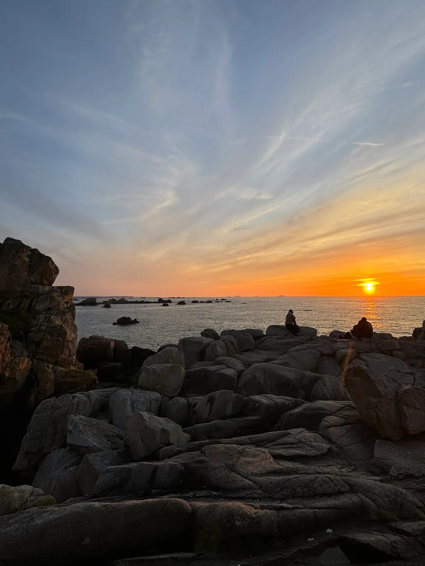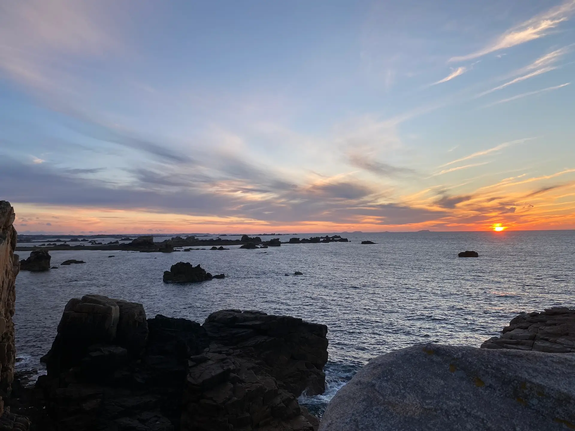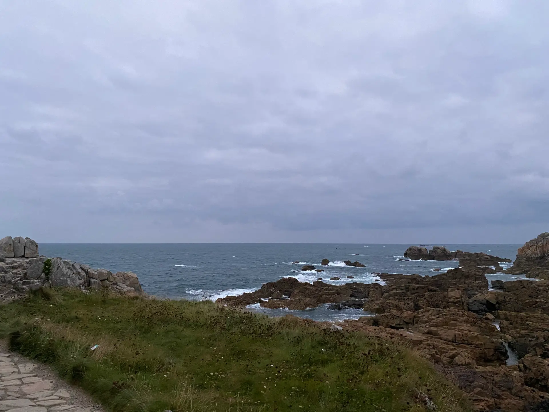 La mer est donc visible de notre jardin. Mais c’est surtout à l’étage que l’on profite d’un magnifique paysage marin. Pour se baigner au plus près de la propriété, il suffit de parcourir 400 mètres d’un chemin plat et aisément praticable. La côte est à cet endroit majestueuse. En prenant la promenade qui la longe vers le Nord, nous atteignons bientôt (après 800 mètres) le site fameux du gouffre. Les amateur.rices de sable fin marcheront pour leur part 1,3 km (sur une route toujours aussi praticable et facile) pour trouver à Pors Hir une large et magnifique plage, abritée (car orientée Est) et baignable même quand la mer n’est qu’à mi-marée, ce qui est précieux dans cet endroit de Bretagne où les marées modifient profondément l’aspect de la côte même par petits coefficients. Idéale pour les jeux des enfants, cette plage est de plus dotée d’une cale où il est très aisé de descendre une embarcation.